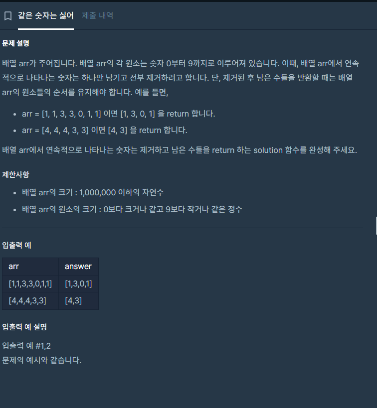 문제 제목: 같은 숫자는 싫어 - 스택