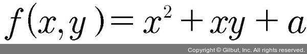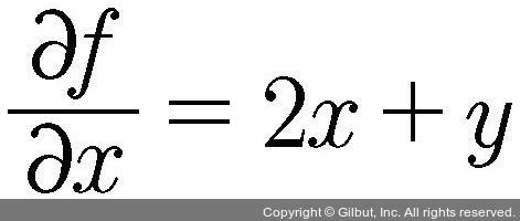 그러면 앞에 나온 함수 f(x, y) = x2 + yx + a를 x에 관해 편미분 하는 과정은 어떻게 될까요? 먼저 바로 앞에서 배운 미분의 성질 4번에 따라 x2항은 2x가 됩니다. 그리고 x에 관해 미분하면 다른 모든 항은 상수로 취급하므로 y는 상수가 됩니다. 따라서 미분의 성질 3번에 따라 xy는 y가 됩니다. 마지막 항 a는 미분의 성질 1번에 따라 0이 됩니다. 이를 정리하면 다음과 같이 나타낼 수 있습니다.