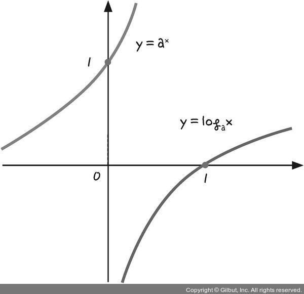 지수 함수 y = ax(a ≠ 1, a > 0)는 로그의 정의를 따라 x = loga y로 바꿀 수 있습니다.