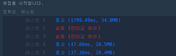이렇게 풀면 테스트는 풀리지만, 최종 채점에는 런타임에러가 난다 ㅠ,ㅠ