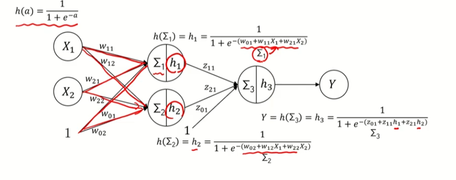 시그마 선형결합 값을 시그모이드 함수에 넣어준다.