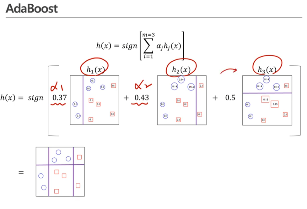 - 앞 단계에서 조정된 확률(가중치)을 기반으로 다음 단계에서 사용될 training dataset를 구성