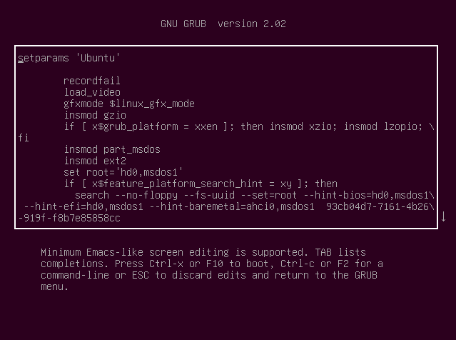 'linux /boot/vmlinuz' 라는 내용이 나올때 까지 내려준다.